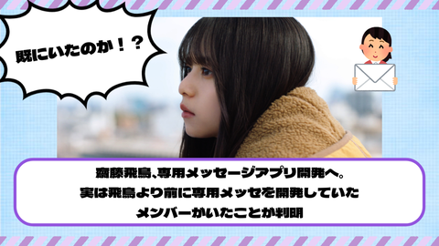 【乃木坂46】齋藤飛鳥、専用メッセアプリ開発へ。 実は飛鳥より前に専用メッセを開発していたOGメンバーがいたことが判明【YouTube更新】