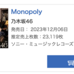 【速報】ここへきて再び盛り返す!乃木坂46 34th『Monopoly』5日目売上23,119枚、累計525,203枚でオリコン